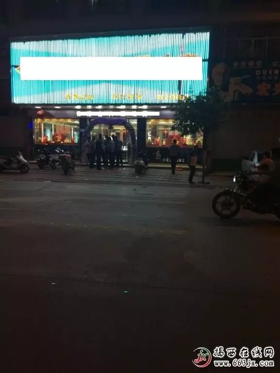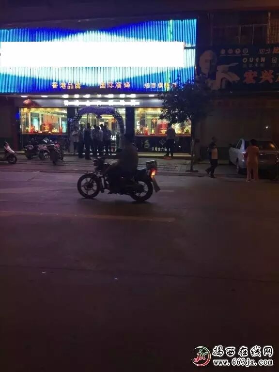 6月3日晚上十点左右,揭西河婆温泉路某金行给骑着摩托的蒙面歹徒抢劫,具体损失估值中。揭西警方也第一时间出警赶到现场进行了解追捕。