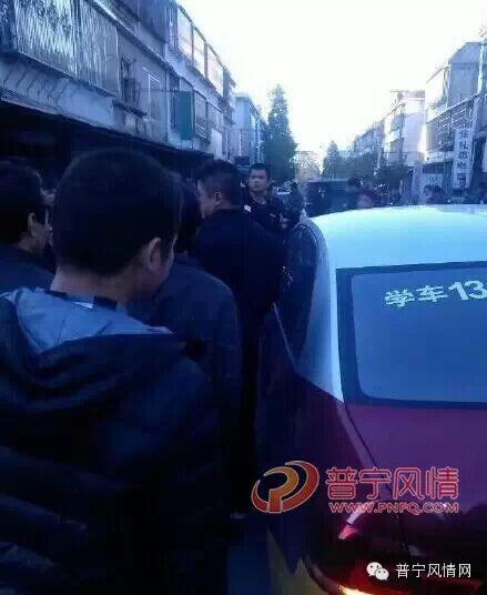 昨天下午3点多,普宁南溪钟堂村路段发生一宗驾校教练车严重肇事案件,肇事车辆撞飞7岁女童后逃逸,接着又撞伤帮忙追逃的路人,在逃至南溪镇政府前又撞伤一老汉及一小孩,最后经众人协力才将教练车逼停。报警2小时后交警才赶到现场,伤者已经送医院救治,图为群众强行拦截现场!强烈谴责肇事司机