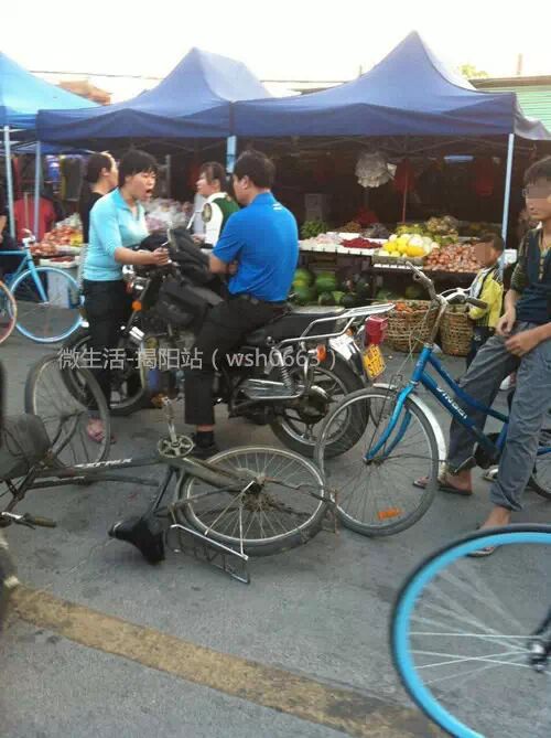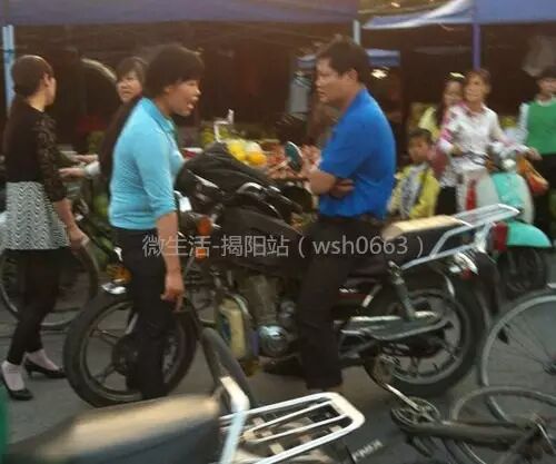 揭阳乔南广场,一单车女与摩托男发生摩擦,女子要求高额赔偿...